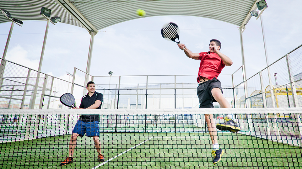 Lapangan padel memiliki ciri khas: dikelilingi dinding kaca atau kawat yang memungkinkan bola memantul. Ukurannya juga lebih kecil dari lapangan tenis.